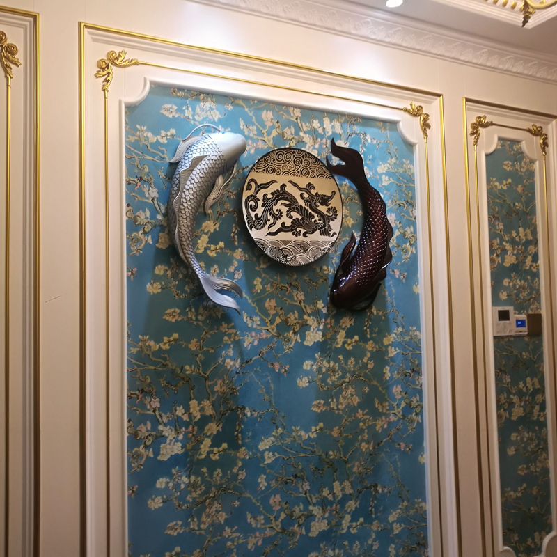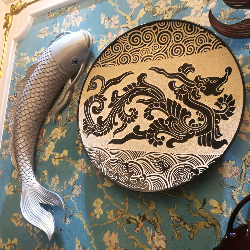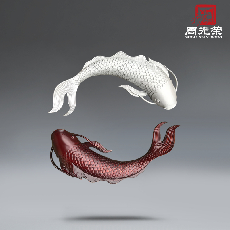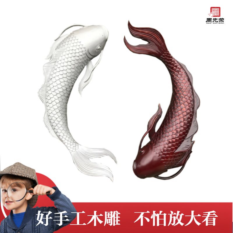 Zhou Xianrong Tai Chi wall hanging solid wood hand carved more than a year pendant decorative Feng Shui fish thickened Dongyang wood carving