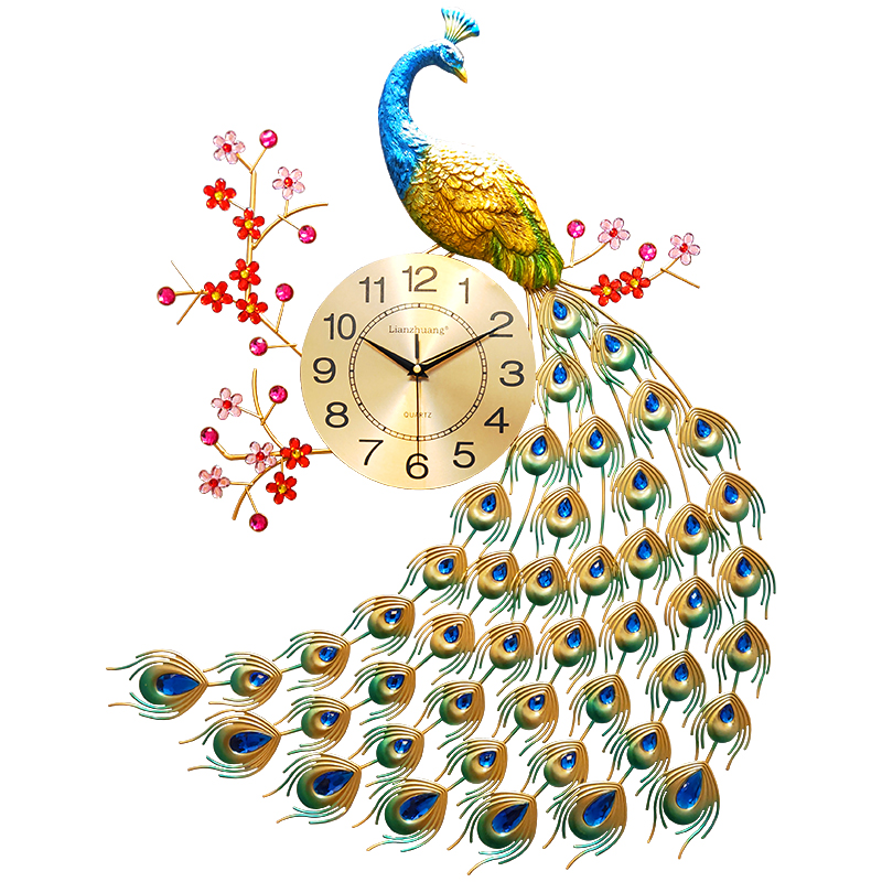 Watch-clock hanging clock Living room Chinese Wind Home Hanging Watch Dining Room Decoration Creative Peacock Xuan Guan Quartz Clock Phoenix Clock