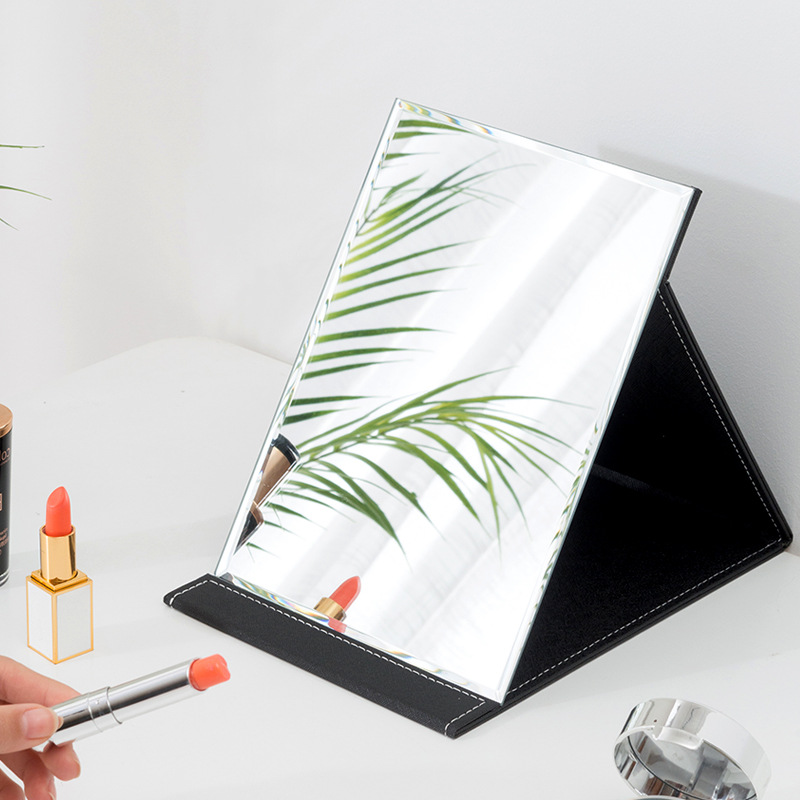 PU Large Number Desktop Cosmetic Mirror Fold Portable Makeup Mirror HD Desktop Accommodation Student House Princess Mirror Woman
