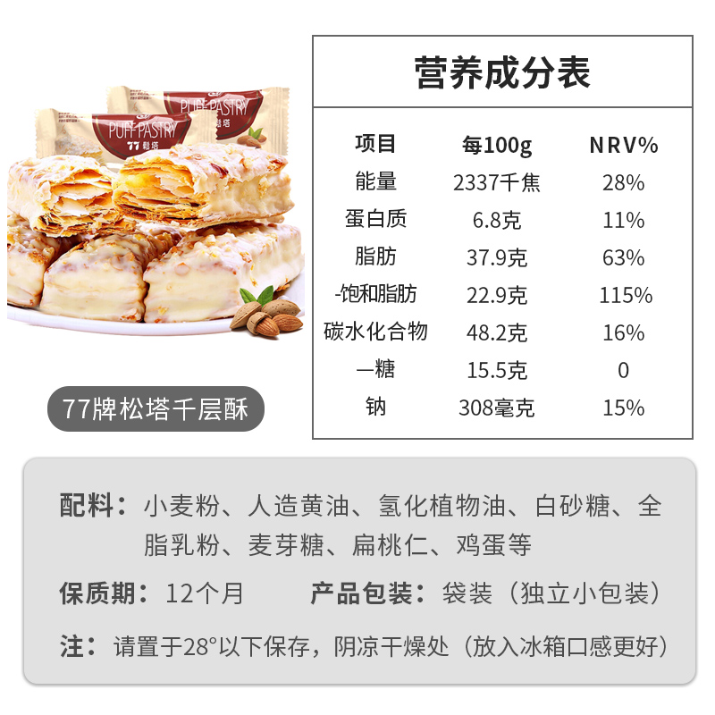 Wheat Flour Margarine Vegetable Oil White Sugar Milk Powder Maltose Almond Egg Starch Sorbitol Liquid (Sweetener) Lactose Polydextrose Crisp Rice (Rice Starch Flour Wheat Germ) Salt Emulsifier (
