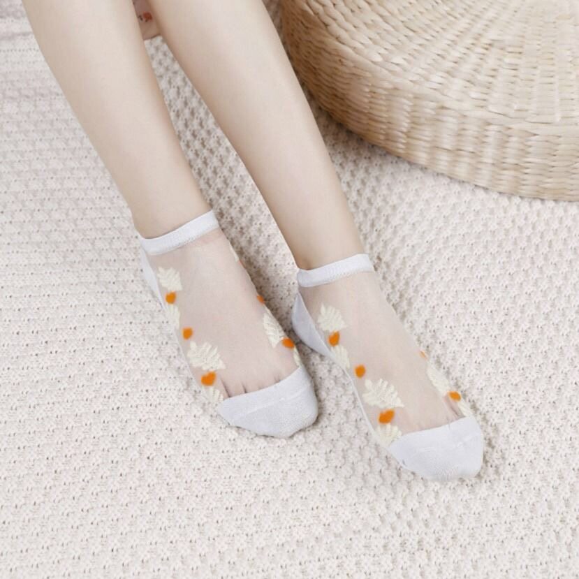 10 Double silk stocking in aged thin medium cylinder jacquard with heel complexion Sharpine mouth Short Sox women's heel sock 3181