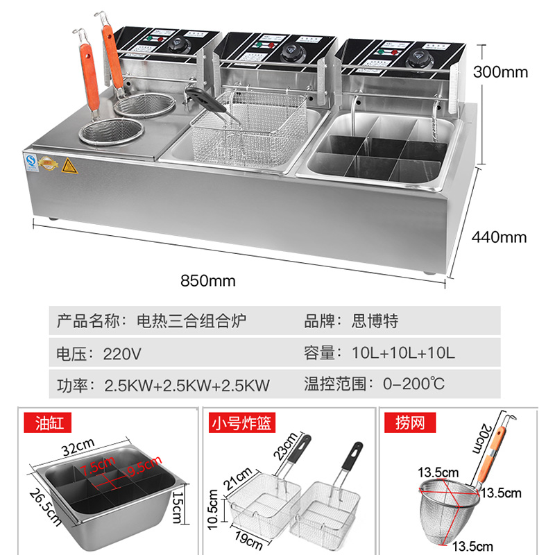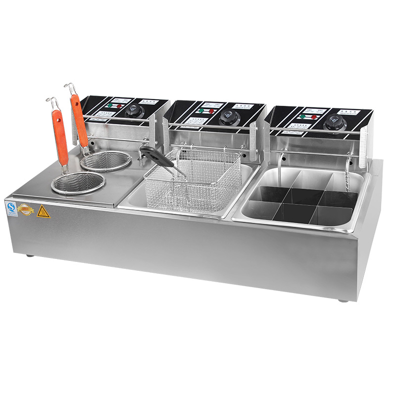 Electric fryer commercial frying pan electric heating noodle cooker three-cylinder spicy oden machine snack equipment string incense