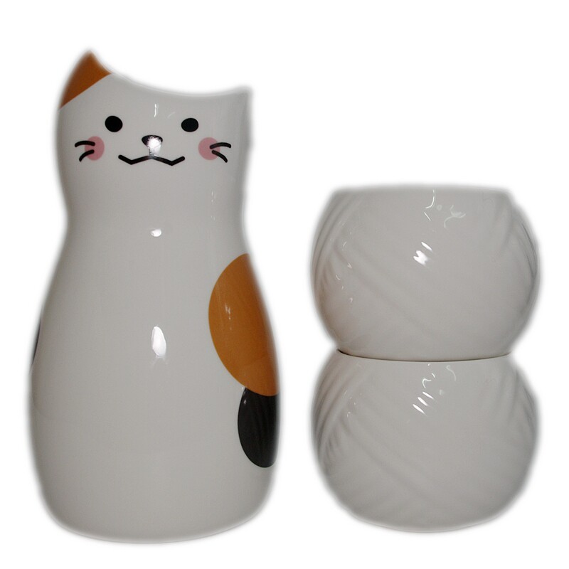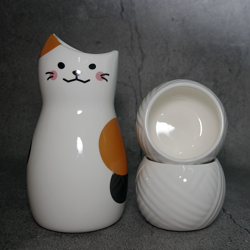 JL Outlet Japan Ceramic Clear Wine Ware Suit Three Flowers Kittens Day Style Clear Wine Jug Wool Jersey Ball Wine Cup Set-Taobao