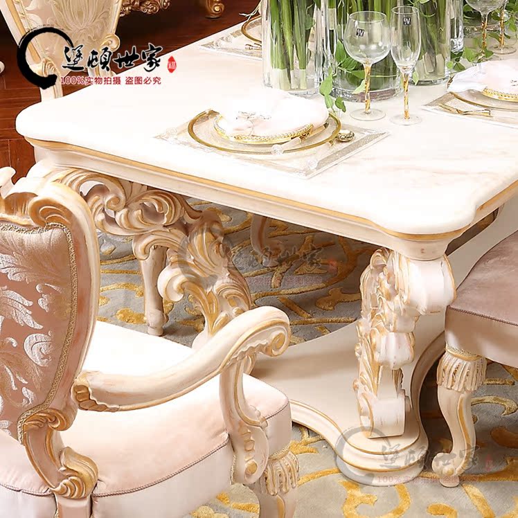 Eurostyle solid wood dining table marble face long table American dining table and chairs combined villa with luxurious engraving table dining table