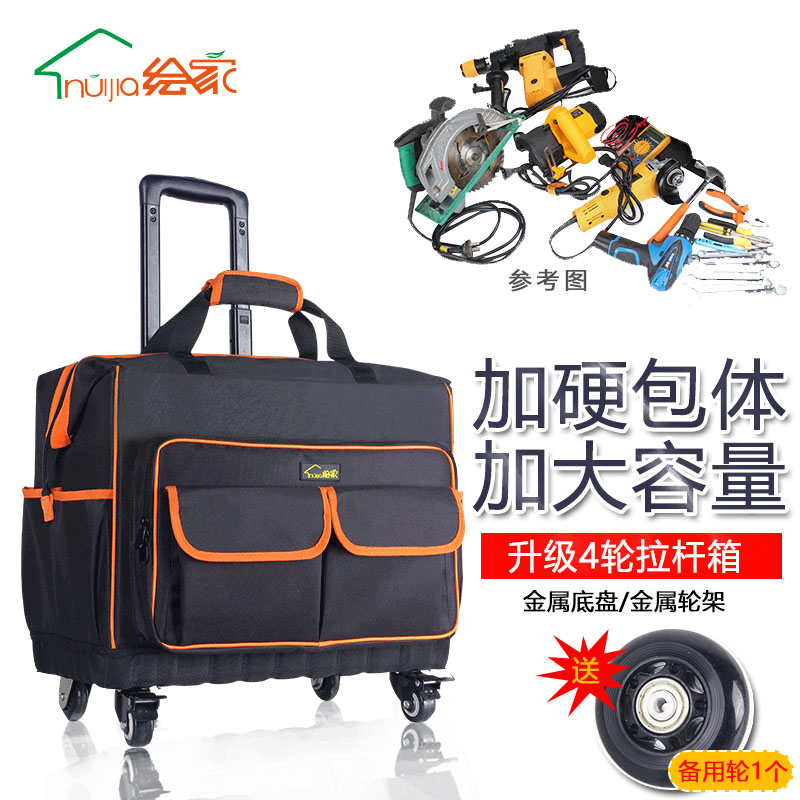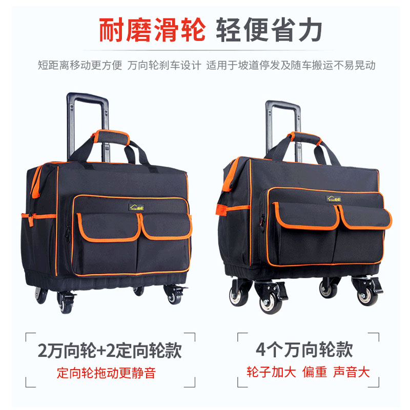 Tool pull rod box bottom iron plate toolbox Oxford cloth multi-function pull rod type hardware pull rod pack quietly