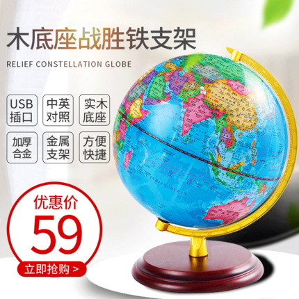 Student land polometer big swing piece small night light shine creative teaching with world earth instrument ar intelligent children's toy 32cm English and Chinese high definition junior high school topographic geomorphograph