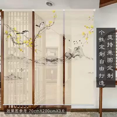 Megart rolling curtain curtain new Chinese Zen Lotus hanging screen curtain partition window office living room shade curtain