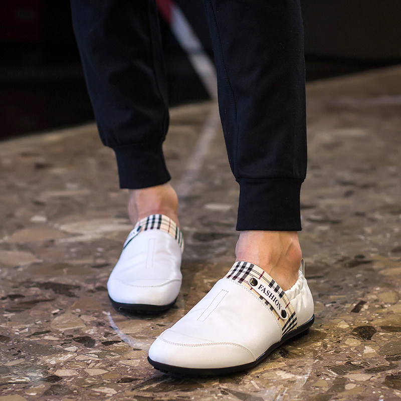 Summer men's toe top layer cowhide leather leather shoes over-the-foot casual shoes trendy youth personality beanie shoes men's lazy shoes