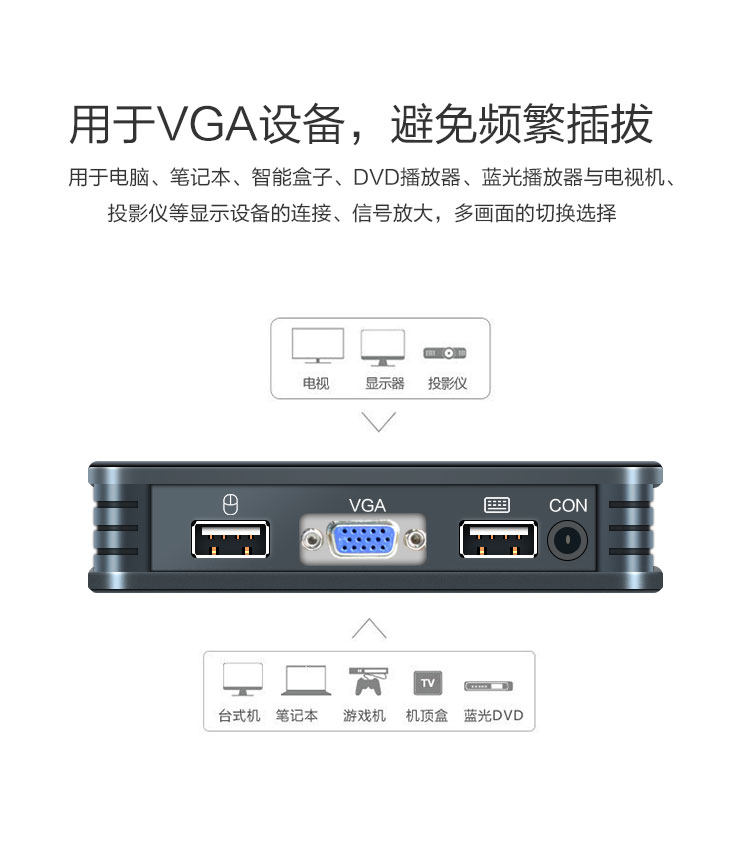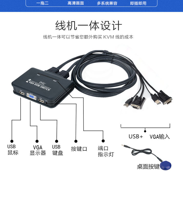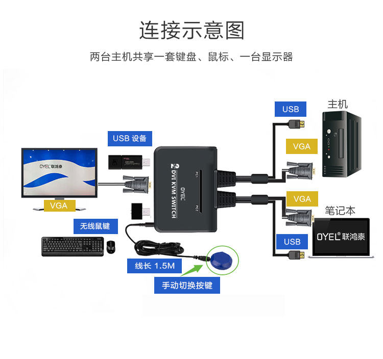 VGA2 in 1-out switcher Two desktop host computers share with a set of keyboard sliding mouse a display