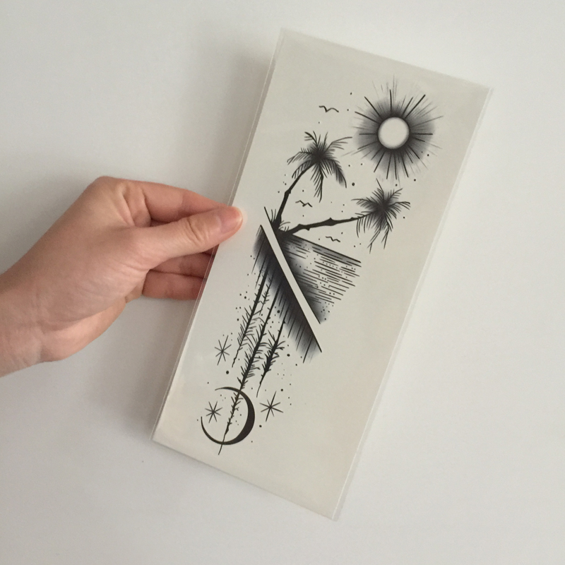 Tattoo stickers landscape couple day moon sun tattoo original black and white dot thorns realistic waterproof female lasting net red models - Taobao