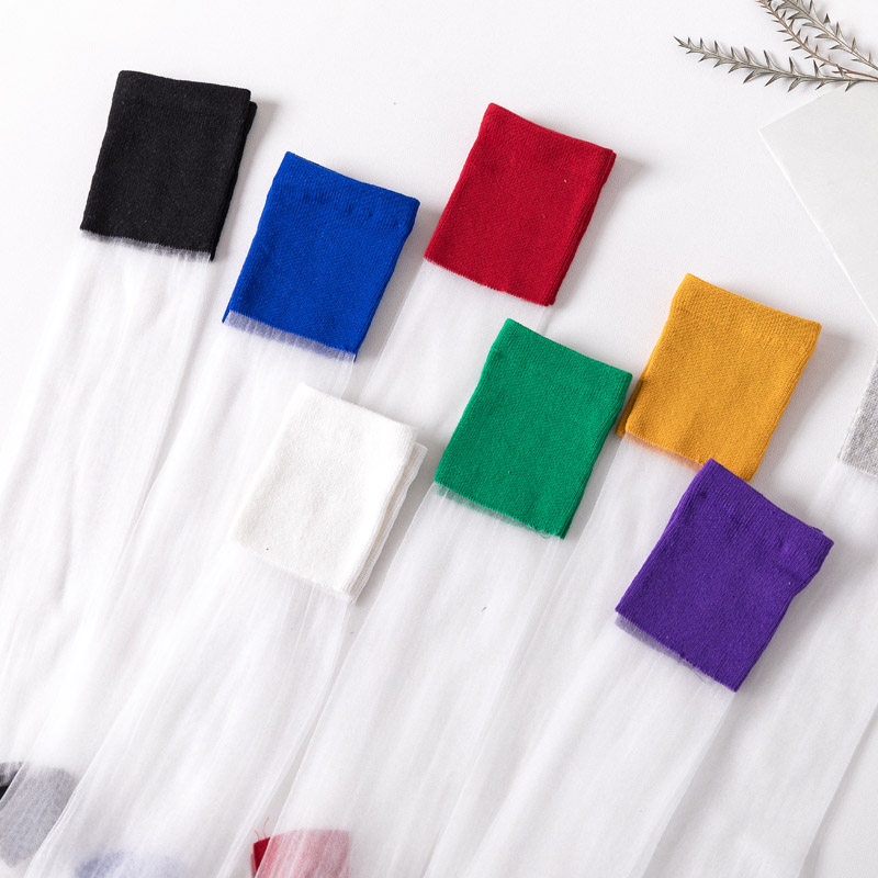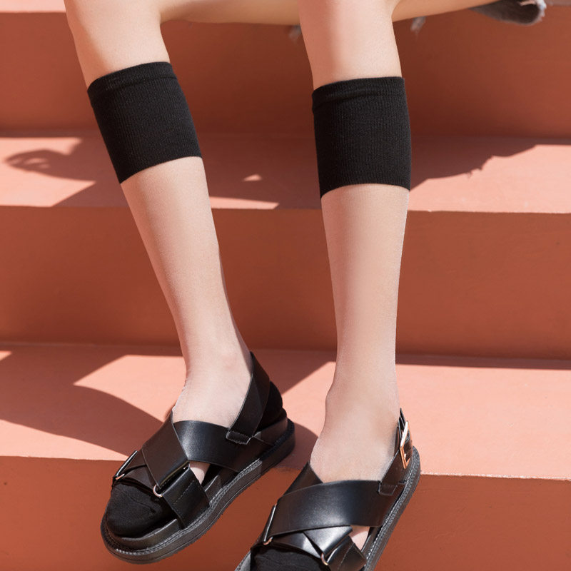 3 Double Loaded Calf Socks Summer Thin women Chains Crystal Silk Bubble Sox Breathable College Wind Glass and kneecap
