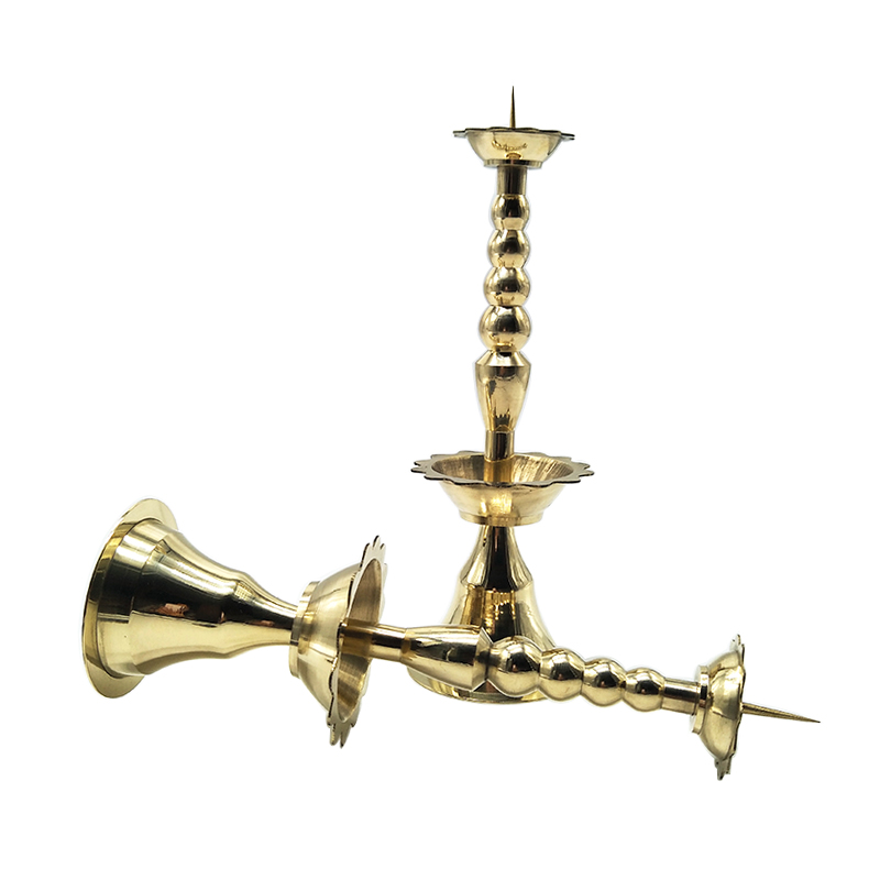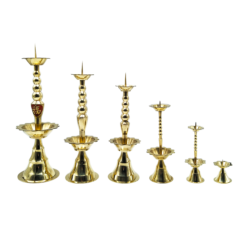 A pair of bronze candle holders for the Buddha's retro wax candle holder pure copper for the Buddha lamp's home Buddhist hall dedicated to the sacrificial supplies bronze candle holder