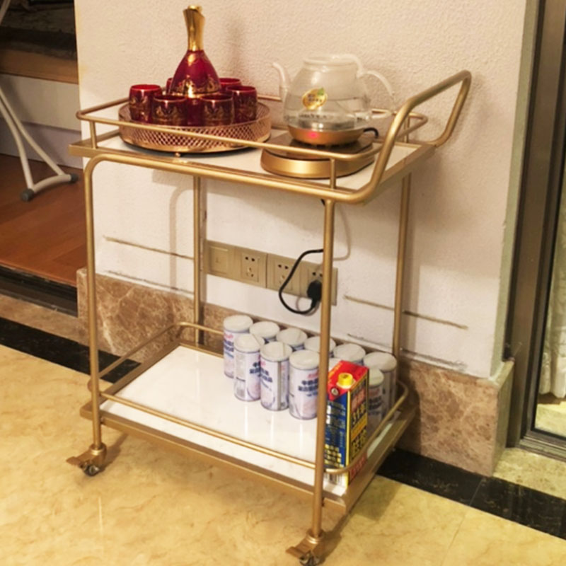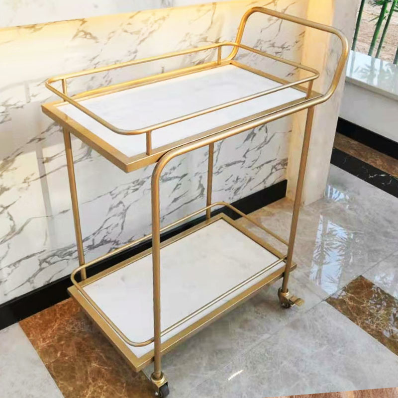 European-style golden hotel bar trolley restaurant mobile hand push dining car creative meal edge fruit cart commercial