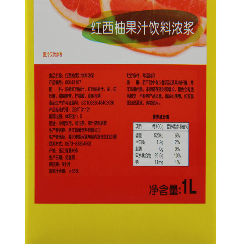 Dexin Red West Grapefruit Precious Red West Grapefruit Beverage Concentrated Pulp 1L Box Loaded West Pomp Full Cup Red Pomelo Milk Tea Special Red Pomelo