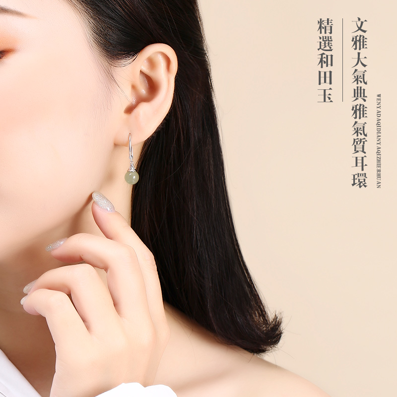 925 sterling silver earrings women natural Hetian jade earrings earrings net red temperament jade ear jewelry Christmas gift