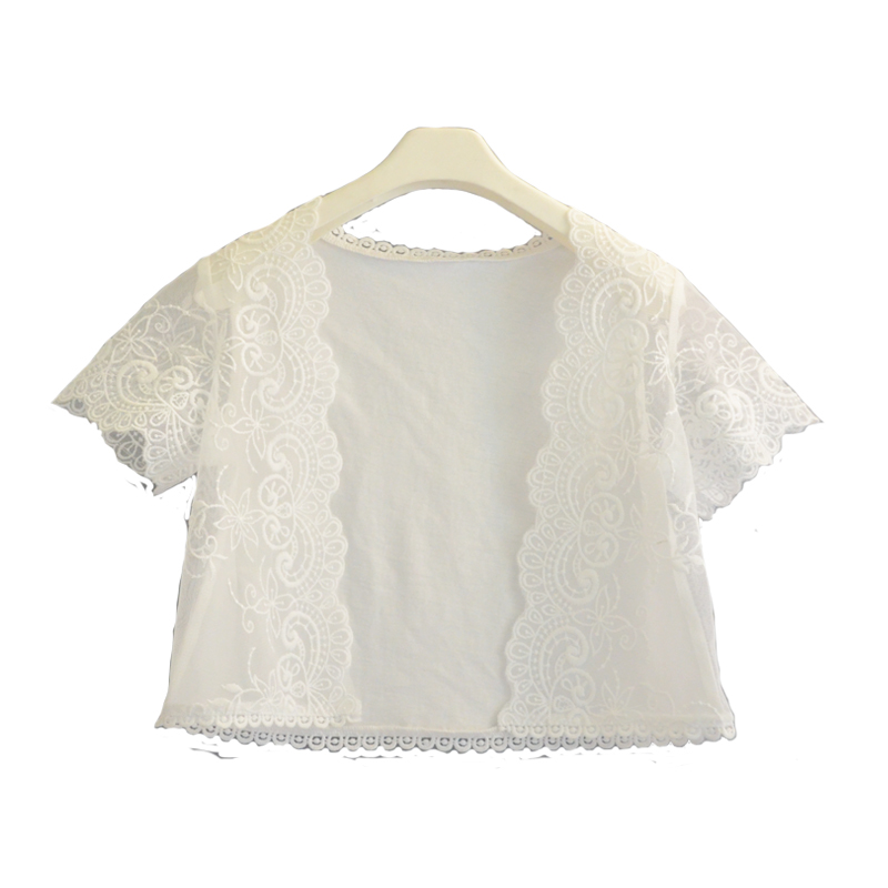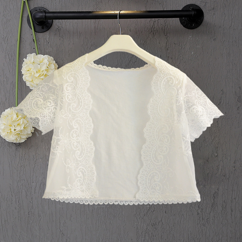 Girls Short Sleeve Shoulder 2019 New Children's Lace Shirt Small Cover Becket Beauty Princess Outside