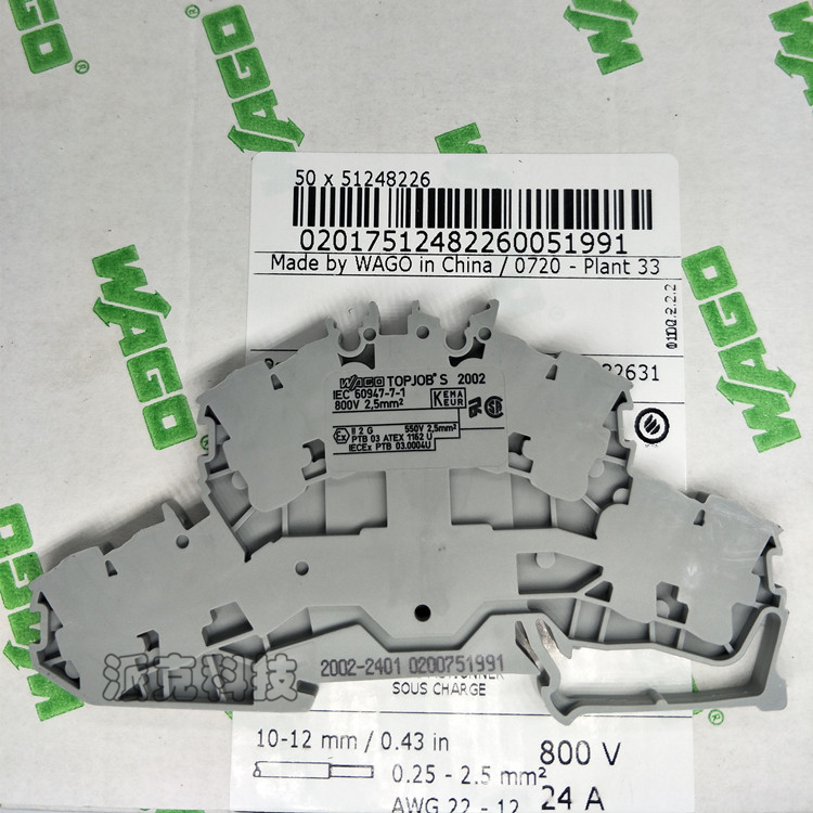 German Wancan 4 wire double terminal block 2002-2401 spring rail assembly 2 5mm WAGO