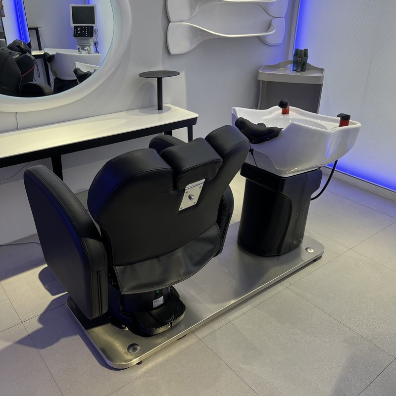A Shampoo bed can be rotated and tilted up and down B Massage shampoo bed can lie flat C Shampoo bed can be rotated and tilted up and down D Shampoo bed can be rotated down and lifted D1 Shampoo