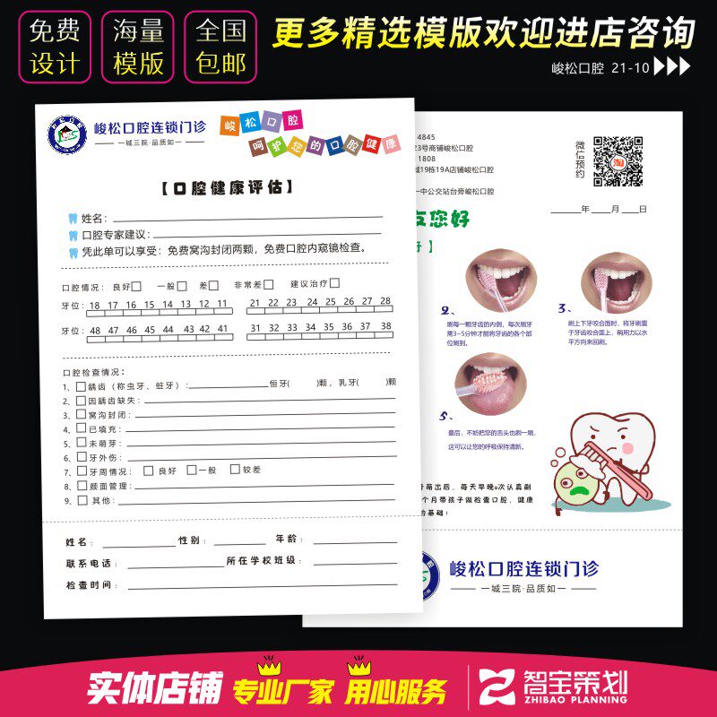 Oral registration form custom outpatient inspection form printing children's health dental consultation form new customer consultation form design