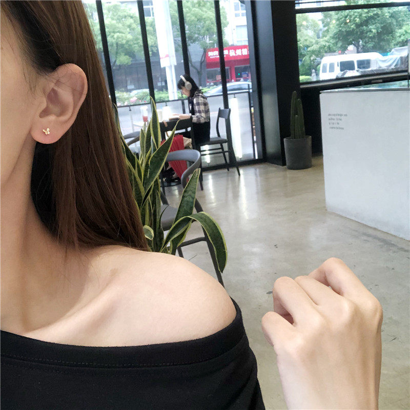 14K gold small butterfly pure silver ear nail female Jane about small 2021 pop student fresher and cold and windy ear earrings-Taobao