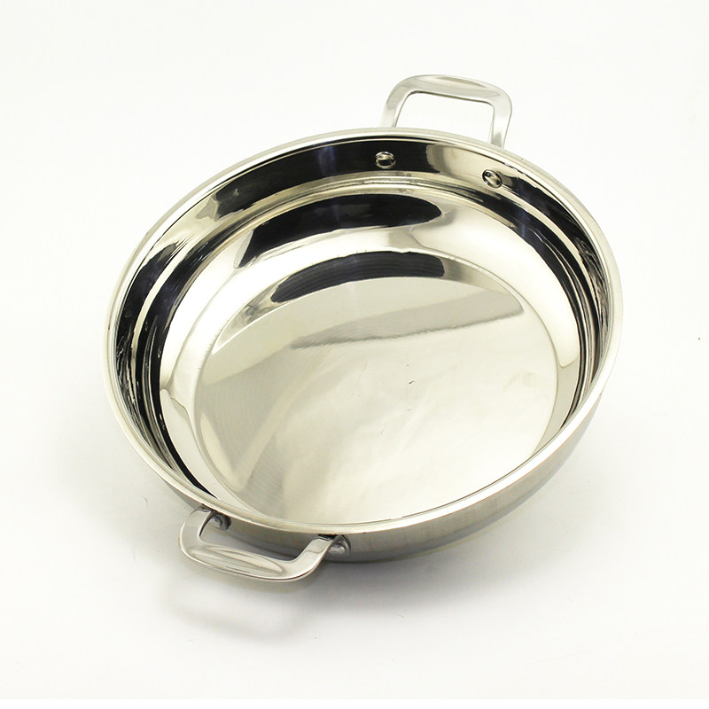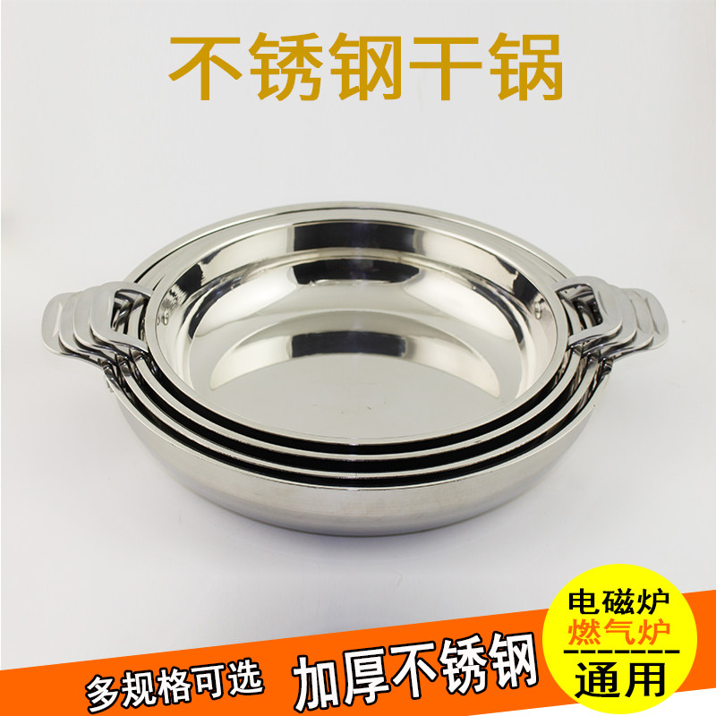 Stainless Steel Seafood Stew Soup Pan Flat Bottom Light Soup Pan Small Lobster Special Shallow Soup Pan Double Ear Large Seafood Pan Fish Pan