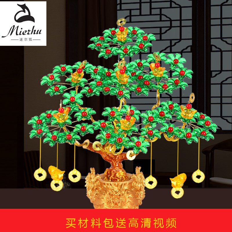 diy weaving handmade beaded fortune tree material bag lucky money shaker money tree beads crafts tree bonsai ornaments