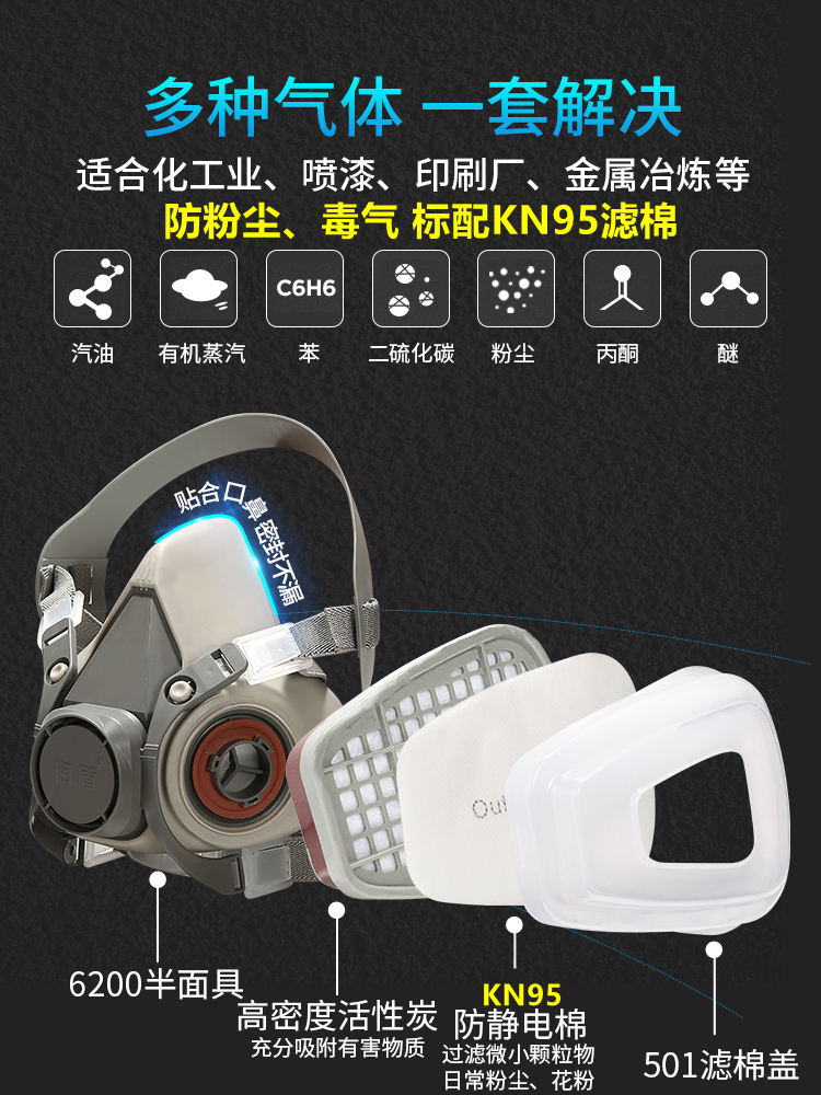 6200 dust mask + anti-fog large eye mask + 60 pieces of filter cotton