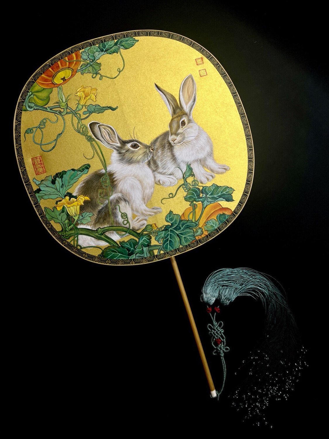 Suzhou Craft Jade Bamboo Handle Double-sided Clay Golden Cooked Rice Paper Group Fan's fan pen in small block-Taobao