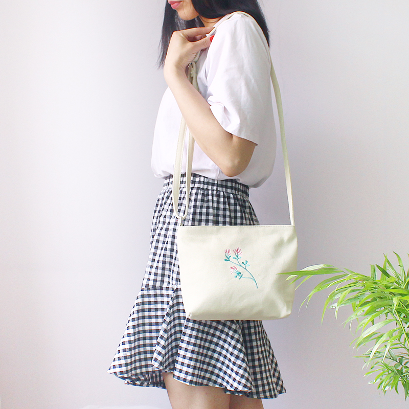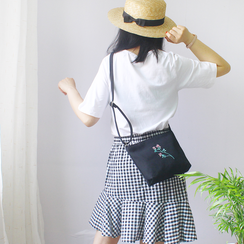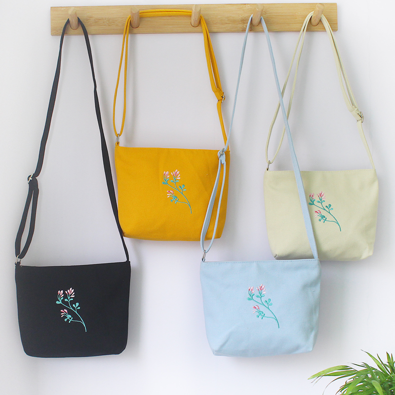 School flower a flower messenger bag women Joker ins simple wind shoulder canvas small bag women's bag summer small fresh