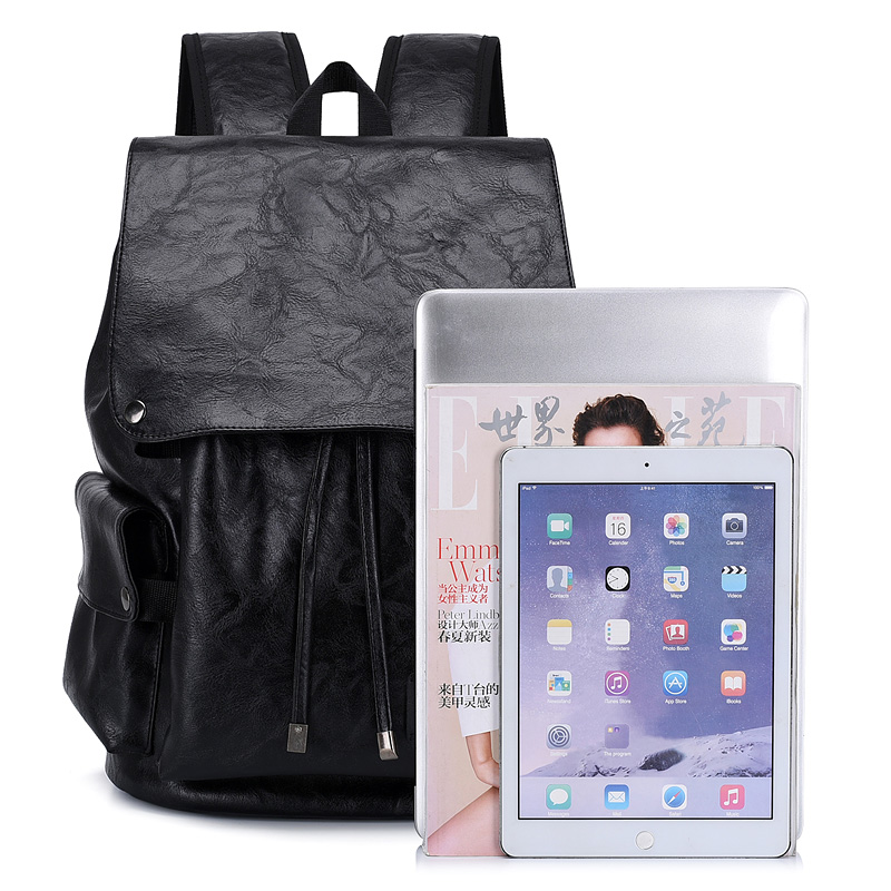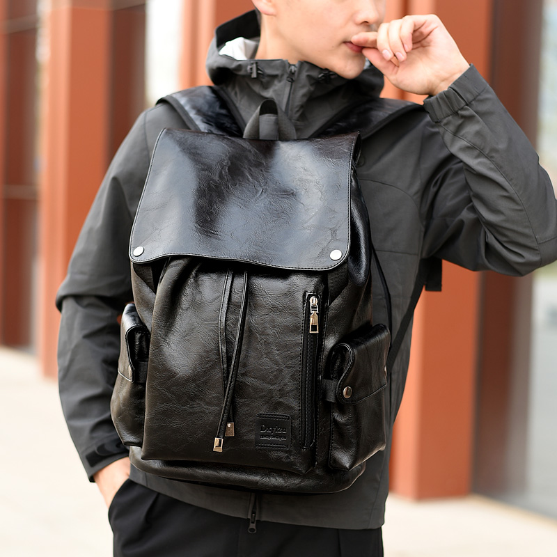 New men's soft leather backpack large capacity middle school student schoolbag fashion Hong Kong style business trip 15 6 inch computer backpack