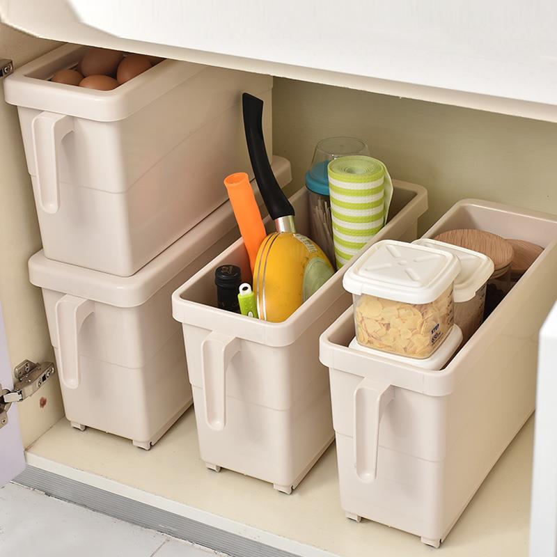 Cracked rice bucket ultra-narrow Japanese-style kitchen practical rice storage box kitchen rice bucket rice storage box household 5kg