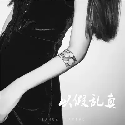 She draws arms, arms, rings, plain patterns, body stickers, wrists, waterproof and long-lasting female flower arm patterns