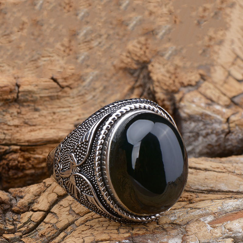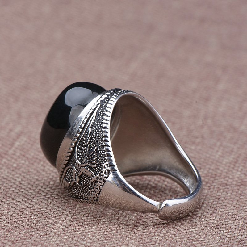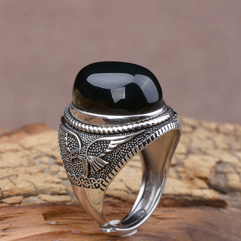 925 Pure Silver Inlay and Tian Ink Qingyu ring Oil Runner fine ink Qingyu ring Men and women Jade Ornaments