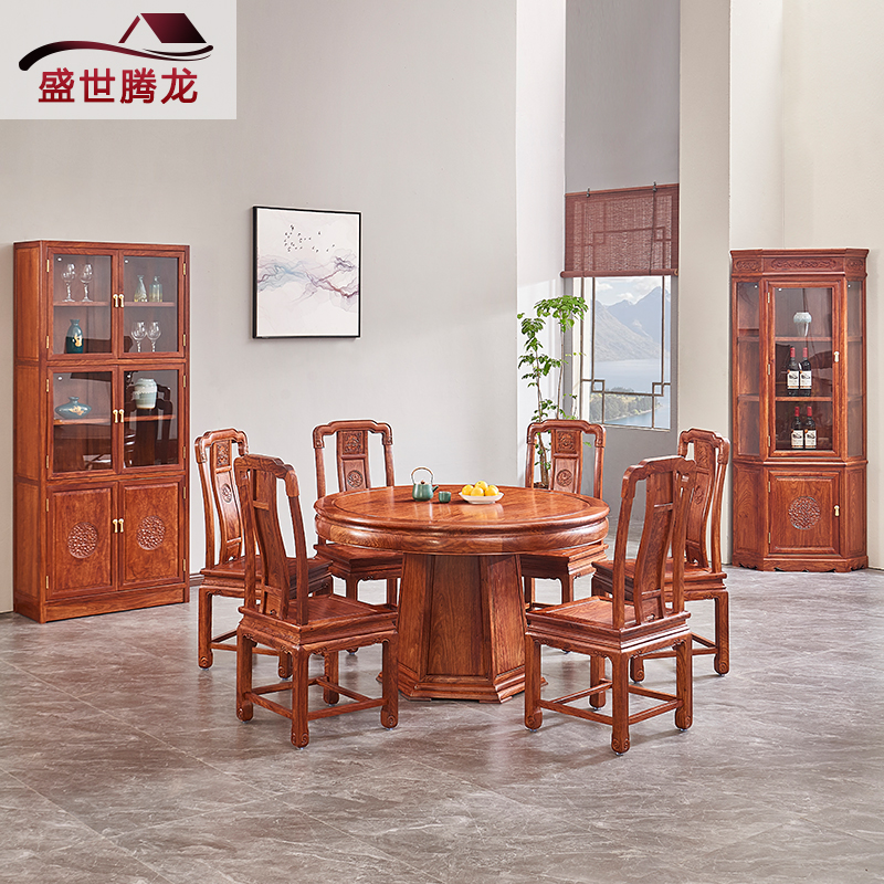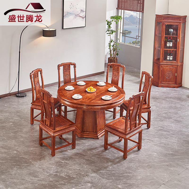 New Chinese mahogany dining table boutique hedgehog red sandalwood dining table rosewood round table all solid wood dining room dining room dining table and chair combination