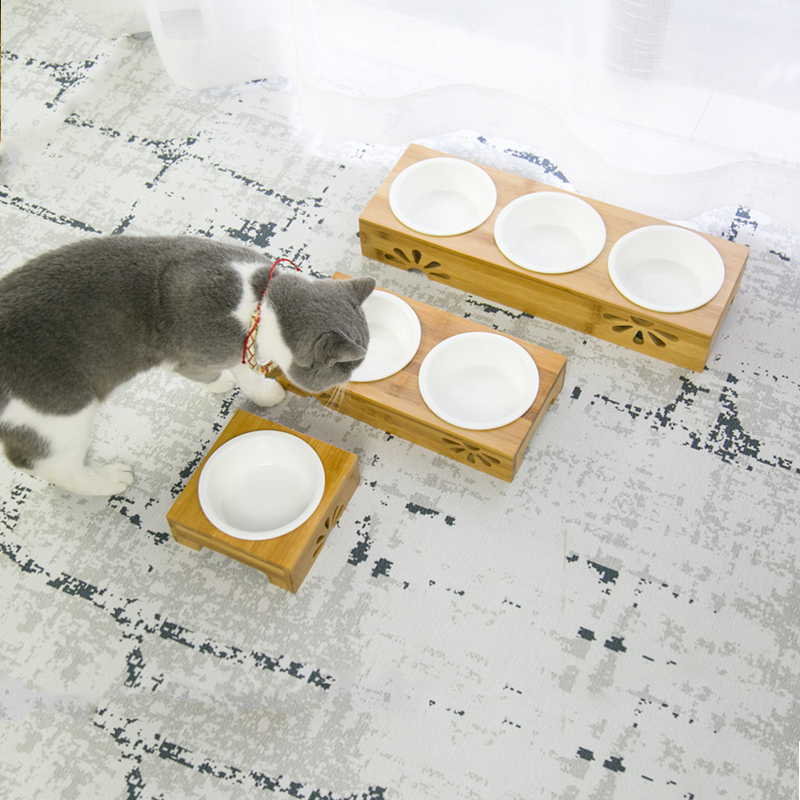 Cat Bowl Double Bowl ceramic protection Cervical Spine Wooden Anti-Overturning Three Bowls Daily Cat Food Basin Dog Bowl Pet Bowl Cat Food Bowl