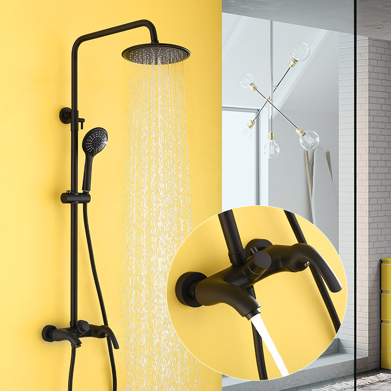 Special black European-style shower shower set all copper frosted matte shower faucet supercharged Nordic simple