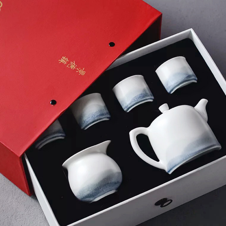 Far Mountain Tea Set Group Home Jingdezhen Ceramic Kongfu Tea Creative Chinese Style Day Style Brief Modern Gift Gift Box