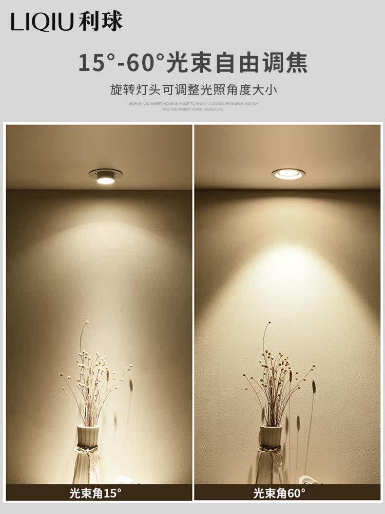 Spotlight led ceiling light embedded home living room ceiling background wall light opening zoom spotlight COB downlight