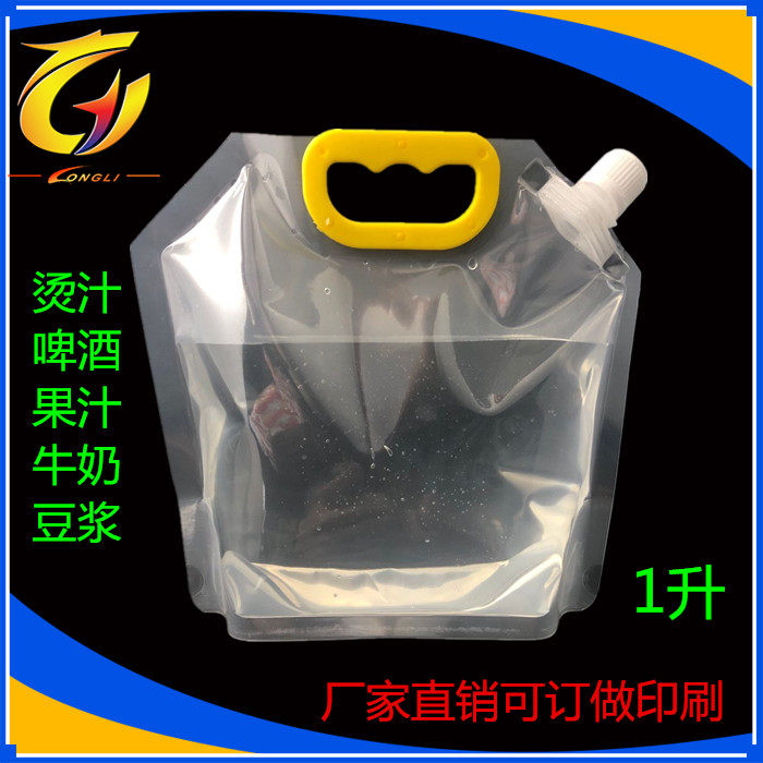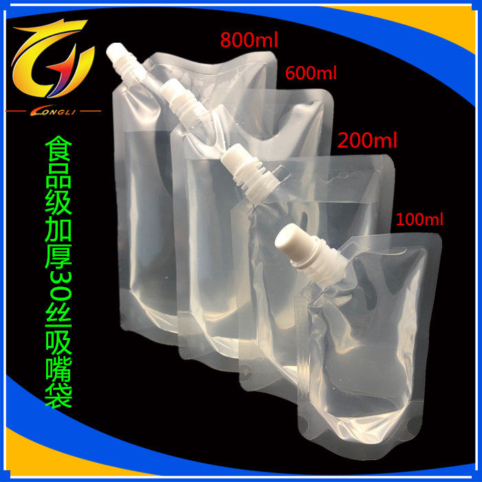 Portable sealed plastic packing bag Juice soup wine soymilk milk Transparent self-standing nozzle liquid packaging bag promotion