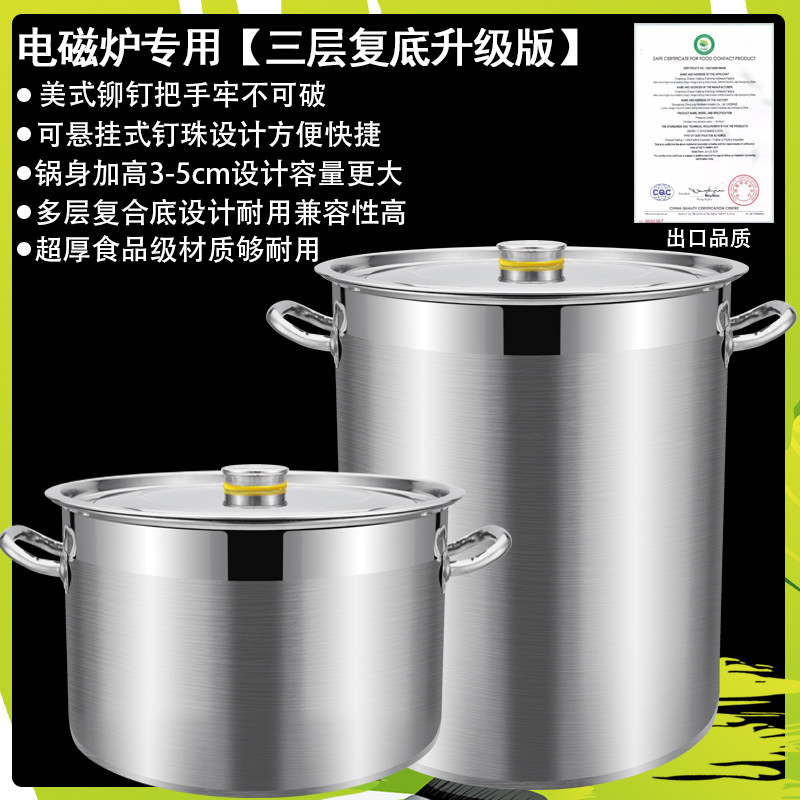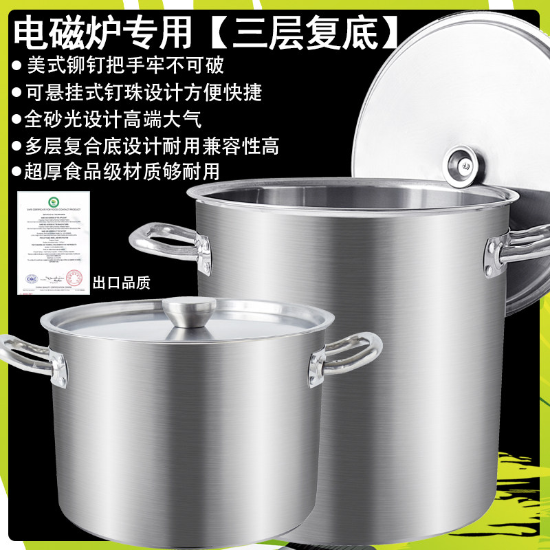 High pot stainless steel barrel commercial round barrel with lid marinated bucket large capacity composite bottom induction cooker stainless steel soup pot