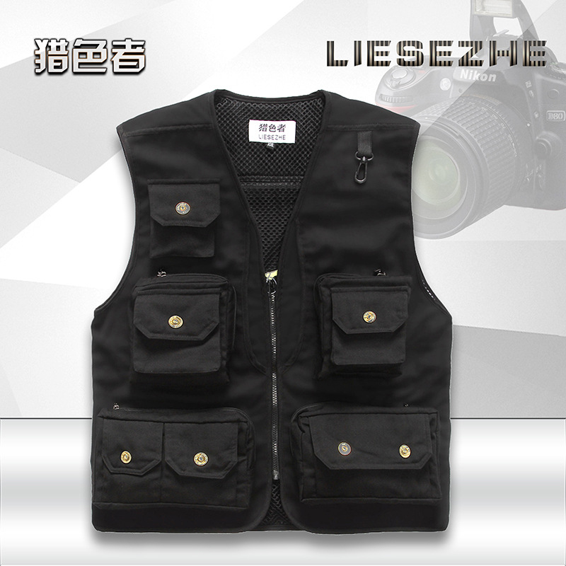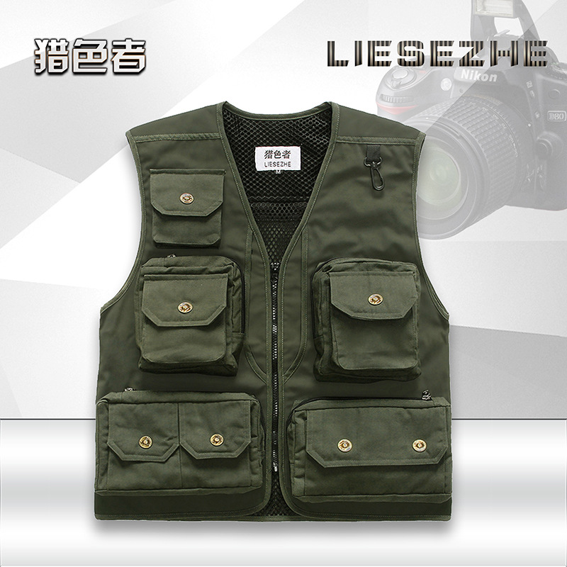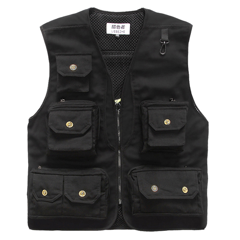 Men's Vest Custom Printed LOGO Outdoor Cotton Multi-pocket Photography Fishing Casual Outer Vest Vest Vest Custom Vest
