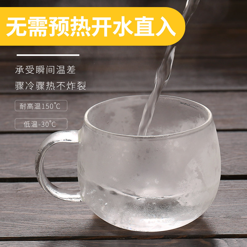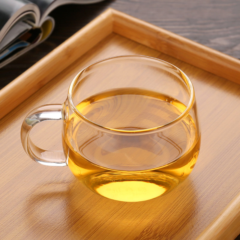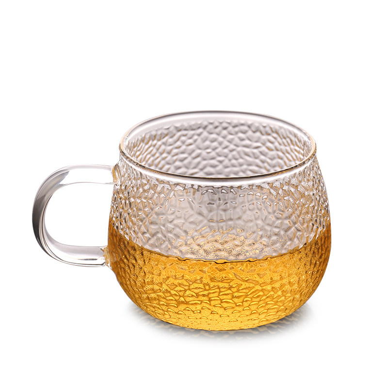 Kangyun thickened hammer pattern glass teacup Small teacup Kung Fu tea set Household with handle transparent glass