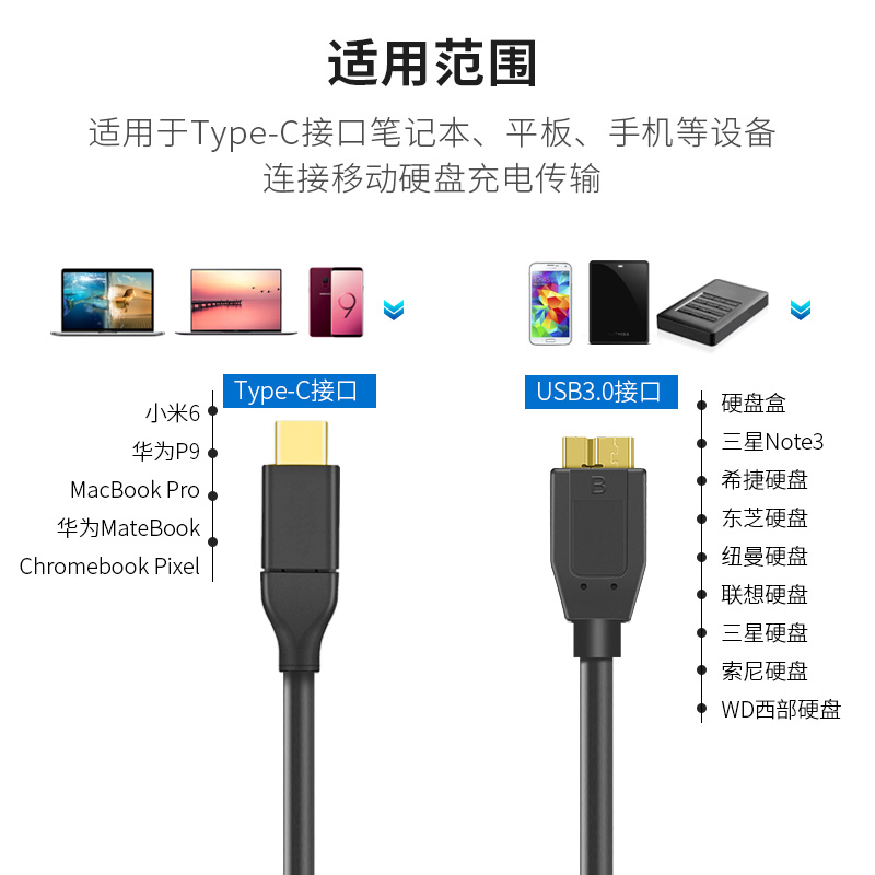 typec turn mobile hard disc case data line USB3 1 type-c mobile phone computer connected micro usb3 0