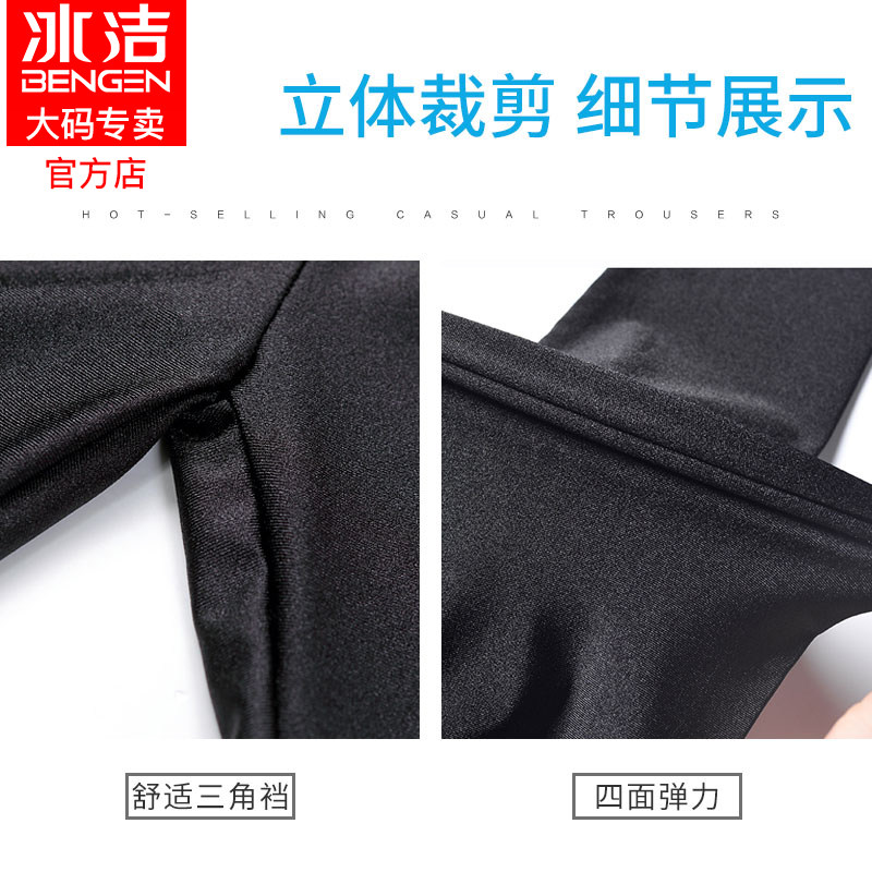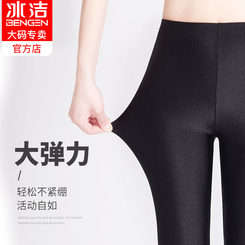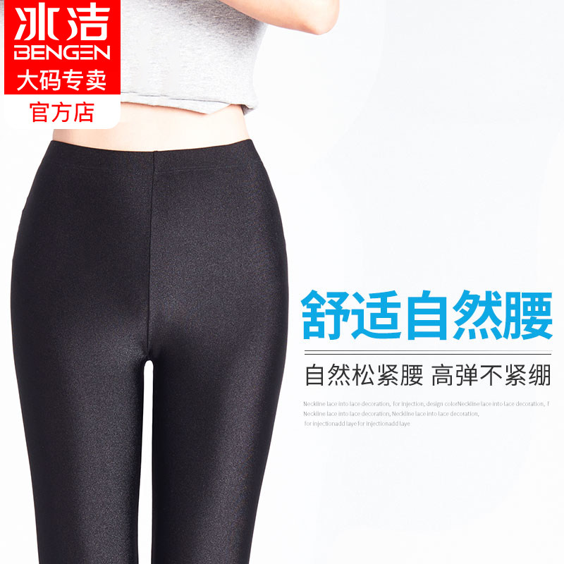 Bingjie 7-point glossy pants summer ice silk leggings tight high elastic thin five-point pants women's thin outer wear cropped pants