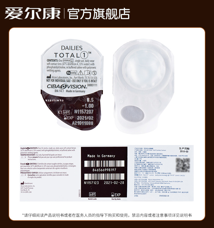 Alcon Shikang water gradient throws daily 30 pieces of silicon hydrogel myopia contact lenses transparent non-monthly throw