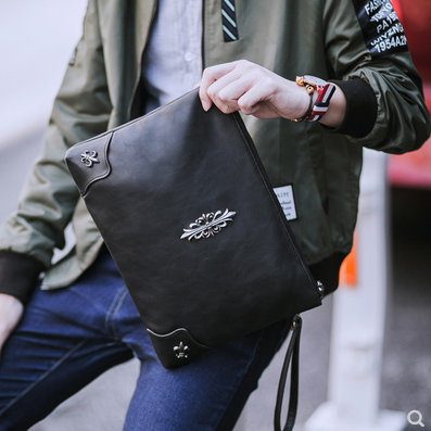 Korean Version Tide Rivet Wrist Bag Casual Single Shoulder Inclined Cross IPad Bag Men And Women Handbag Boomer Bag Men's Hand Grab Bag-Taobao
