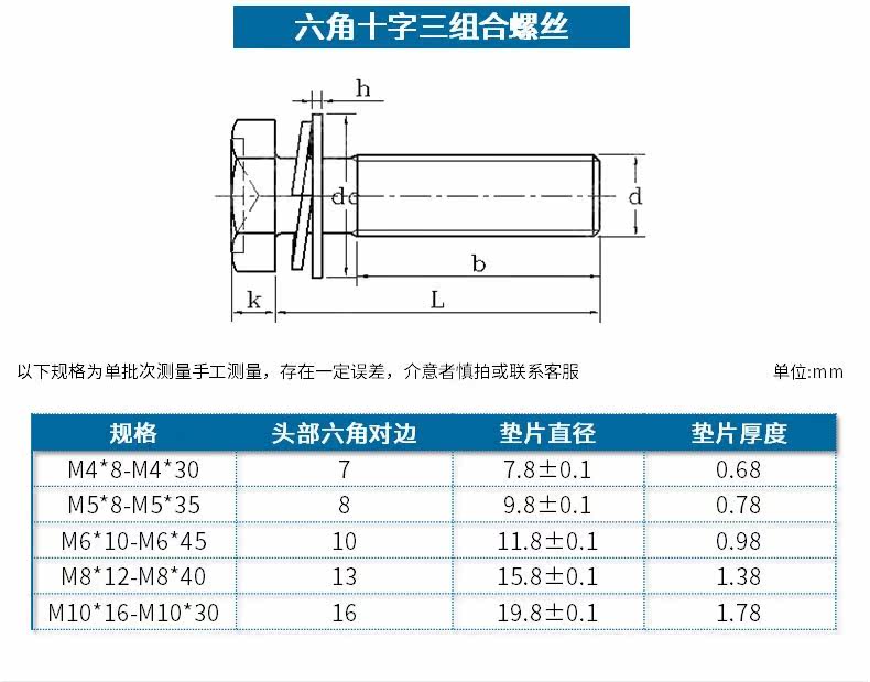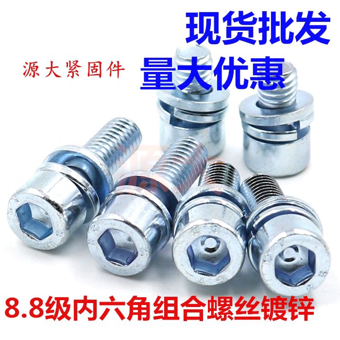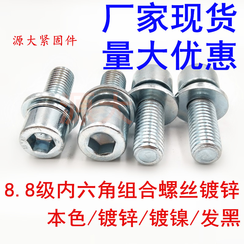 8 grade 8 carbon steel galvanized inner hexagon three combination screw with flat spring washer combination bolt M4M5M6M8M10M12