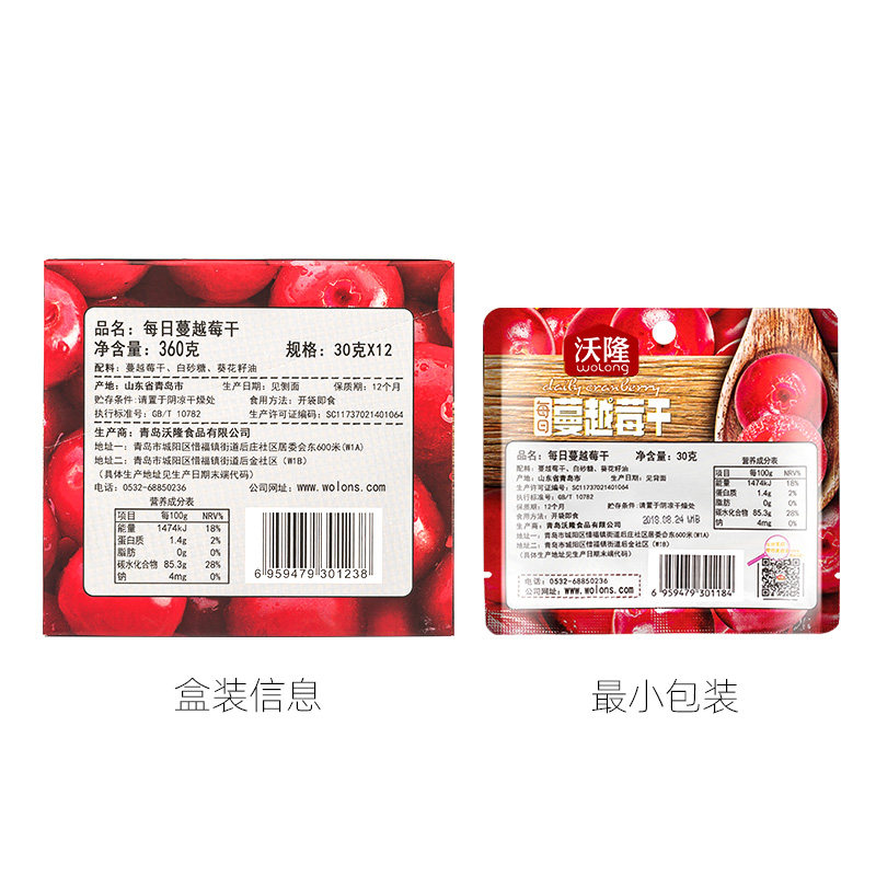Vollon Daily Cranberry Dry 360g baking with raw material ready-to-use US imported box loaded with 12 bag of small packaging fruit dry