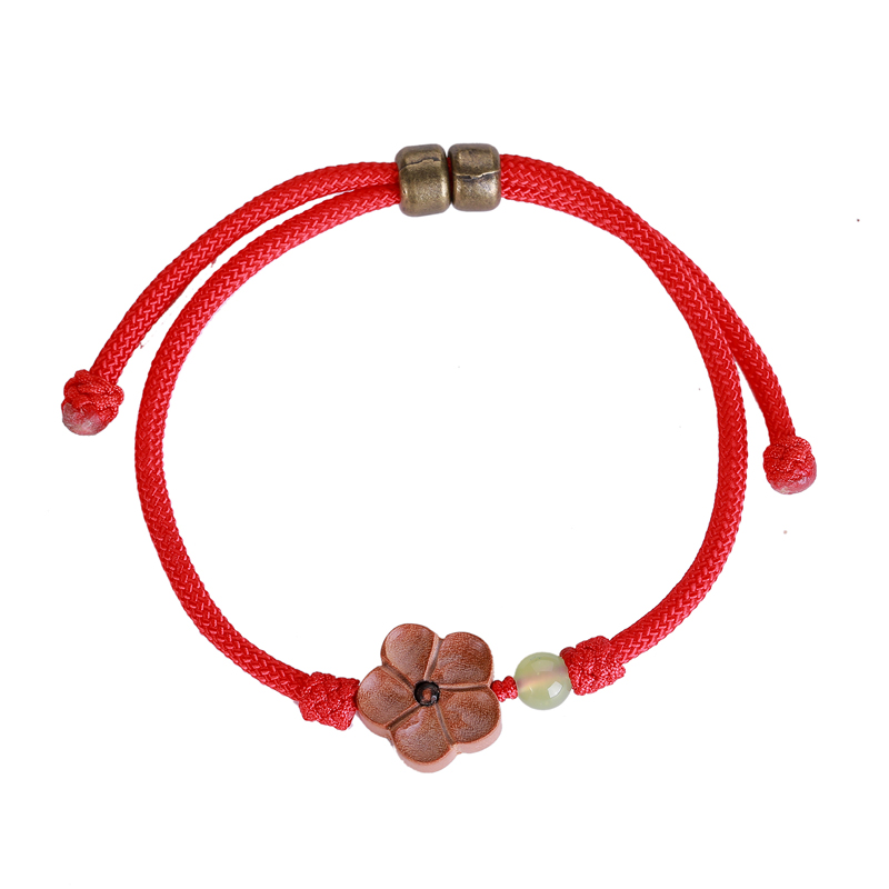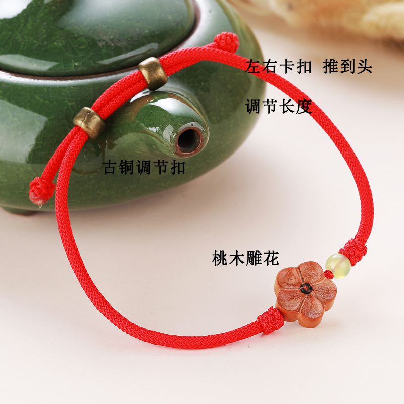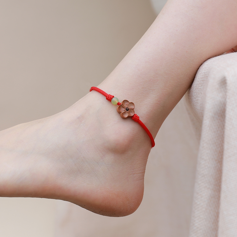 Pure Ornament Peach Wood Red Rope Foot Chain Woman Adjustable Minima Atmospheric Plum Blossom Accessories Student Foot Wristwatch Weave