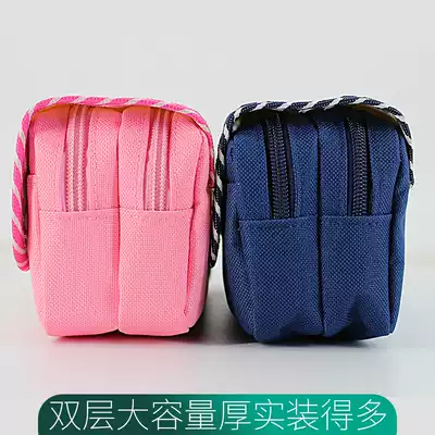 Silver fir son pencil case large capacity boys and girls high school students with stationery box bag canvas can stand personality simple creative multi-layer thick pencil case can be stored 20cm feet